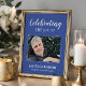Dieser elegante, weiße Text auf dem blauen Foto-Gedenkposter ist eine wunderbare Möglichkeit, sich an einen geliebten während der Feier des Lebensservice zu erinnern. Dies macht einen schönen Sake, den Sie in Ihrer Zuhause hinterher anzeigen können.