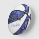 Diese niedliche Basketballuhr zeigt das realistische Bild eines Basketballs, der abwechselnd blau und weiß aufgefärbte Basketballfelder mit zarten doodle Blume, Federn und Paislien hat, die auf den blauen Basketballplatten gemustert sind - und für ihren Basketballraum den Namen der Athleten tragen - von katz_d_zynes