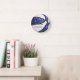 Blaue weiße Mädchen boho Federn Muster Basketball Runde Wanduhr