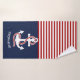Stilvoll dekoratives Badetuch verfügt über eine nautische, blaue und weiße Streifen mit einer weißen Ankervektoranzeige auf einem blauen Hintergrund können Sie leicht ändern die Farbe. Matching Artikel in unserem Geschäft verfügbar.