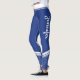 Diese modernen, blauen Workout-Leggings zeichnen sich durch ein elegantes, weißes Blumendesign an Knöcheln und Kälbern sowie durch weiße Streifen am Bund aus. Einfach anpassbar, indem Sie auf beiden Seiten Ihren Namen auf einem kalligraphisch weißen Schriftart hinzufügen.