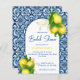 Blaue Fliesen und Zitrone Amalfi Positano mediterrane Stil Brautparty Einladung Vorlage bezahlbare Brause Dusche Einladungen.