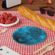 Blauer abstrakter polygoner Hintergrund Pappteller