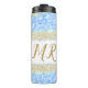 Blauer agate Gold Glitzer funkelnder Monogramm-Nam Thermosbecher