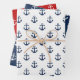Blauer Anker der Nautischen Marine auf weißem Hint Geschenkpapier Set