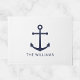 Moderne Minimalistische Nautical Door Mat mit marineblau Anker mit personalisiertem Namen in marineblau modernem Sans Serif Schriftart Stil auf weißem Hintergrund. Perfekt als Strandhaus Dekoration, Hauswärme Geschenk und mehr.
