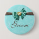 Blauer Aquabraun-Edelsteinbogen mit Blumen Button