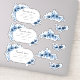 Konturaufkleber mit blauen Aquarellfarben und blauem Blattwerk mit einem Produktetikett und ergänzenden Blume. Der Produktaufkleber eignet sich für duftende Kerzen, Badbombengeschenke, Karosseriebutter, Dosenartikel, handgefertigte Süßwaren, Getränkeetikett oder andere.
