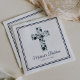 Elegante Papierservietten aus heiligen Kommunionen mit einem einfachen, weißen Hintergrund, der in jede Farbe verändert werden kann, einem blauen, floralen religiösen Kreuz in Aquarellen, einer doppelten Grenze und einer modernen Vorlage, die leicht zu personalisieren ist.