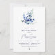 Blauer Blumenduschkopf in minimalistischem Stil mit blauem Blume-Bouquet und Muster zurück. Sie können diese Einladung mit Ihren eigenen Daten im Bereich "Personalisieren Sie diese Vorlage" personalisieren.