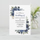 Blauer Blumenrahmen Hochzeit Einladung