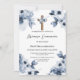 Blauer Blumenstrauß erste kommunion Einladung auf Spanisch für Junge.