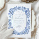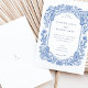 Diese anspruchsvolle Hochzeitseinladung besticht durch ein handgemaltes Blumendesign in einem auffallenden Kobaltblau. Die Blumenmotive umrahmen die Hochzeitsdetails mit einem zarten, naturlich inspirierten Rahmen und schaffen eine elegante und zeitlose Ästhetik. Der saubere, weiße Hintergrund hebt den Kontrast der blauen Blumenelemente hervor, während das minimalistische Layout des Textes dem klassischen Werk eine moderne Touch verleiht. Auf der Rückseite der Karte befindet sich ein einfaches, minimalistisches Monogramm, das ein persönliches und raffiniertes Element hinzufügt. Ideal für traditionelle, rustikale Hochzeiten oder Hochzeiten mit Gartenmotiven vereint diese Einladung die Schönheit der Natur und des Kunsthandwerks mit ihrem detaillierten und eleganten Design.