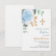 Blauer Blütengrün Goldkreuz Luxus-Taufe Einladung