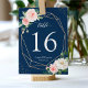 Blauer Blütenrosa Blütengoldrahmen Hochzeit Tischnummer