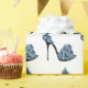 Extravagante schwarze High Heel Schuhe mit blauen Blumen auf Weiß. Die Hintergrundfarbe kann geändert werden.