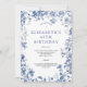 Elegante und hübsche blau-weiße Blumentoilette Aquarell zum 60. Geburtstag Einladung für sie. Bearbeitbar für jedes Jahr und um Ihre eigenen Daten hinzuzufügen. Verfügbar als gedruckter oder sofortiger digitaler Download.
