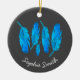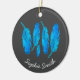 Blauer Boho Federn blau und grau Keramik Ornament