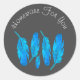 Blauer Boho Federn blau und grau Runder Aufkleber