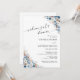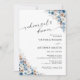 Blauer Boho Probe Dinner Einladung. Dieses stilvolle und elegante Hotel mit Hochzeitsdusche lädt Sie ein, die wunderschöne, handbemalte Wasserfarbe Blue Boho Floral zu genießen. Finden Sie passende Artikel in der Blue Boho Floral Collection.