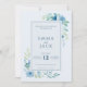 Dieses sanfte und elegante Hochzeitsdesign verbindet wunderbar zarte blaue Aquarellfarben mit grünen Akzenten, gerahmt durch eine raffinierte, blumengeschmückte Fassade, die an einen frischen Frühlingsgarten erinnert. Das Layout zentriert einen romantischen, naturlich inspirierten Rahmen in einer subtilen blauen Box, ergänzt durch eine saubere, zeitlose klassische Serifentypografie, die eine einfache Lesbarkeit gewährleistet. Dieses Design ist perfekt für ein modernes botanisches Thema mit natürlichen, neutralen Tönen und Pastelltönen geeignet und zeichnet sich durch minimalistische Blumenpracht und Vintagen Blattcharme aus. Es schafft ein schlichtes und dennoch elegantes Ambiente, ideal für Paare, die ein romantisches, naturbelassenes Fest mit einer harmonischen und eleganten Ästhetik suchen.