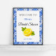 Mediterranes Brautparty Thema - Italienisches Blue Tile Lemon Brautparty Herzlich willkommen Unterschreiben!