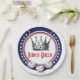 Nutzen Sie diese stilvollen rot, weiß und blau patriotischen Farben für Ihre nächste Bunco Nacht. Perfekte Teller für eine königliche Bunco Queen. Design kommt mit einer Vintagen Krone für ihre königliche Hoheit zusammen mit drei weißen Bunco Würfeln.