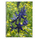 Ein individuelles, spiralgebundenes Notebook, das das Cover-Foto-Image hübscher, blauer Camas-Blume mit kleinen, gelben Wildblumen zeigt. Ein schönes, blumengeschmücktes Design! Als Tagebuch oder zum Mitnehmen von Notizen. Personalisieren Sie das Programm durch Hinzufügen von Namen usw.
