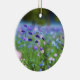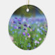 Ein Blumenfeld in tiefblauen und blassblauen Farbtönen, lila, Lavendel und Rosa mit blassgrünen Blätter.