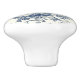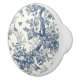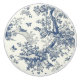 Toile de jouy Muster in Französisch blau auf creme Hintergrund. Vögel und Schmetterlinge verfärben sich in den Zweigen eines blühenden Baumes. Klassisches Spielzeugmuster..