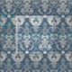 Ein elegantes und raffiniertes, blaues Damast-Wiederholmuster mit aufwändigen Ziermotiven, die durch klassisches europäisches Design inspiriert sind. Das Muster zeigt eine harmonische Mischung aus fließenden Bio Formen, anmutigen Kurven und zarten Blumenelementen, die sich zu einer zeitlosen und luxuriösen Ästhetik vereinen, die jeden Raum vergrößert.