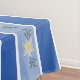 Inspiriert europäische Tischdecke in blau mit hellblauen und weißen Streifen, mit weißem Edelweiß-Muster. Schöne Ergänzung zu jedem Tisch für jeden Anlass.