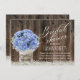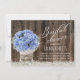 Rustikales Gipskraut u. blaue Hydrangea-Maurer-Glas-Brautparty-Einladungen.
