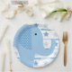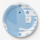 Blauer Elefantpapier-Teller, groß für Geburtstags-Partys, Babyduschen oder irgendeine Gelegenheit wenn Sie Liebeelefanten! Kennzeichnet einen großen blauen Elefanten mit den Polka punktierten Ohren und blaue Sterne auf weißem Hintergrund.