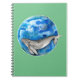 Original Aquarellmalerei von Sandra Gale mit einem Buckelwal, der vor einem blauen, wasserigen Globus, der die Erde darstellt, schwimmt. Perfektes Design für Wal-Uhren, Taucher, Naturschützer und diejenigen, die Wale Liebe.