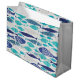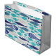 Große, glänzende Geschenktasche mit einem Bild auf beiden Seiten von einer Auswahl an Fischen in verschiedenen Blautönen. Siehe dazu passende Geschenktüten für Medium, Klein und Wein, Konfetti, geschmolzene Gunst-Tag, Etikett und Packpapier. Siehe die gesamte Sammlung des "Under Sea Gift Bags" in den SPEZIELLEN TOUCHS | Abschnitt Gastgeschenke.