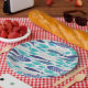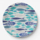 Set von acht 9" Papier Teller mit einem Bild einer Auswahl von Fischen in verschiedenen Blautönen. Siehe dazu passender Kolben und Untersetzer. Sehen Sie die gesamte Sammlung von Untersee-Platten im NAHRUNGSMITTEL/BEV | Abschnitt Geschirr.
