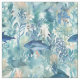 Blaue Fische schwimmen zwischen schwimmenden Seegrasfässern.
