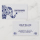 Blauer Flora Elefant über weißem Spitzenhintergrun Visitenkarte