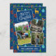 Feiern Sie diese Weihnachtsfeier mit diesem bezaubernden und niedlichen Weihnachtsmuster mit festlichem Hirsch, Weihnachtsbäumen mit Ziergegenständen, Schneeflocken und zahlreichen Blätter und anderen bunten Botanicals. Eine Reihe grüner Perlen, die die Tierpfade darstellen, vervollständigen das Muster. Blauer Hintergrund individuell einstellbar, 3 Ihrer Lieblingsfarben hochladen und mit Ihrem Familiennamen und Jahr personalisiert. Platzhalter-Foto: Chris Briggs, Kyle Nieber und Morgan David von Unsplash, vielen Dank!