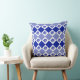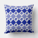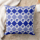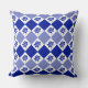 Klassisch blau-weiß gewirbeltes Kissen mit einem blumengeschmückten und rautenartigen Muster.