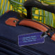 Blauer gestreifter Gepäckanhänger mit editable Text.