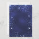 Eine moderne, stilvolle und glamouröse Einladung zu einer Quinceañera, 15. Geburtstagsfeier. Mitternachtsblauer Hintergrund mit Imitaten Glitzer Staub, Kleid und blauen Blumen. Die blaue Farbe ist ungleichmäßig. Der Name ist mit einem modernen handgeschriebenen Stilskript geschrieben. Personalisieren Sie Ihre Party-Daten und fügen Sie sie hinzu.