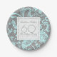 Schönes und elegantes Vintages türkisfarbenes Blumenmuster auf grauem Hintergrund. Raffinierte und feminine 60. Geburtstagsfeierplatte mit transparenten quadratischen Formen für Texte. Alles ist anpassbar: Sie können den Text (Schriftart, Farbe, Größe und Position) und das Design (Größe und Position) einfach ändern, indem Sie auf die Schaltfläche Anpassen klicken. Passende Geburtstagsparty: Papierserviette, Dankeschön für Box... und Geburtstagsgeschenke mit Monogramm: Tasse, Kissen, Gepäck, Gepäckträger und mehr... Vergessen Sie nicht die ganze Sammlung Vintager Blumenmuster zum Geburtstag.