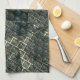 Blauer grauer Backstein-Effekt unter dunkler Stell Geschirrtuch