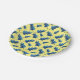 Blaue Blätter über einem hellgelben Zitronenhintergrund. Die Hintergrundfarbe kann geändert werden.