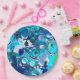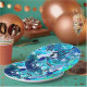 Teller zum Geburtstag oder Babydusche. Blaue und grüne Ozeankunst mit Bläschen und modernem abstraktem Flair.