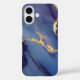 Blauer Hintergrund mit goldenen Streifen und Punkt iPhone 16 Hülle