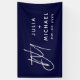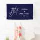 Machen Sie eine Aussage mit diesem personalisierten marineblauen Hochzeitsbanner mit einem großen Pinsel Skript zwei erste Monogramm mit Pärchenname und Datum in Sans Serif Schriftart. Halten Sie es an Ihrem Empfang fest oder nutzen Sie es als Foto-Standlandschaft, um Ihrem besonderen Tag eine persönliche Touch hinzuzufügen.