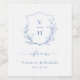 Mit Monogramm Initialen gerahmt von elegantem Wappen und Hand illustrierte botanische Blätter in blau-weiß, einfach und luxuriös. Ideal für moderne klassische Hochzeit, einfache formelle Hochzeit, elegante botanische Gartenhochzeit. Sehen Sie sich alle passenden Stücke in der Sammlung an.